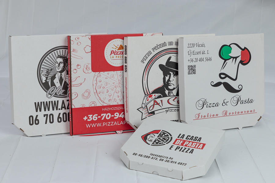 Nyomtatott pizzás dobozok logóval vagy teljes grafikai felülettel